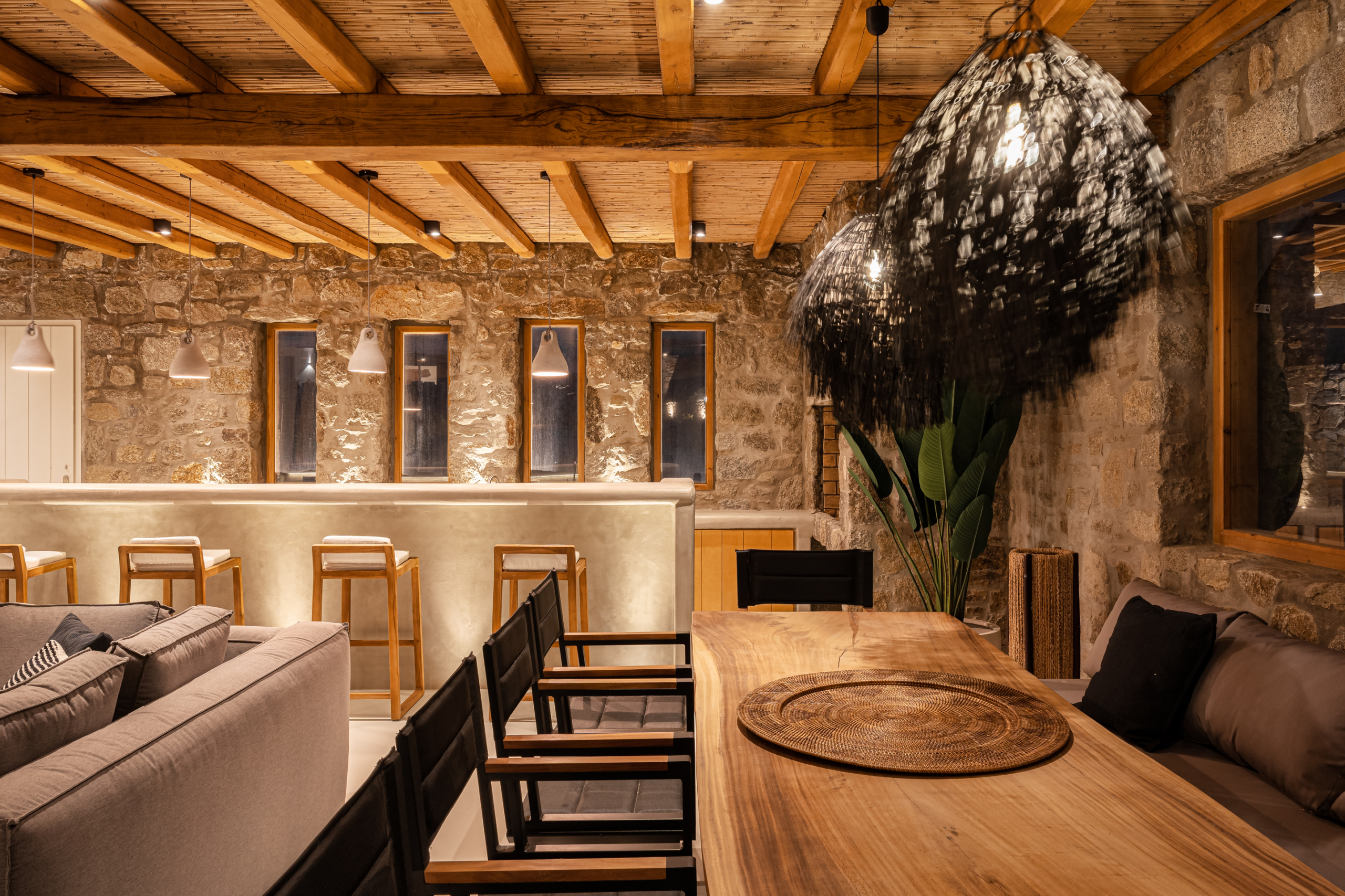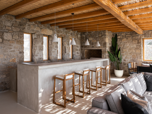Open plan fully equipped kitchen, spacious living room with TV, pool and sea view, indoor dining area [6 seats]and amazing pool and sea view, guest WC, – access to the outdoor kitchenette-bar with BBQ and outdoor dining area