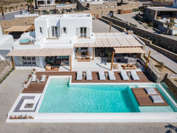 Entrance floor well-desinged private pool, loungers, outdoor kitchenette with built in-BBQ, fridge, bar with high chairs, outdoor dining area [8 seats] outdoor shower
