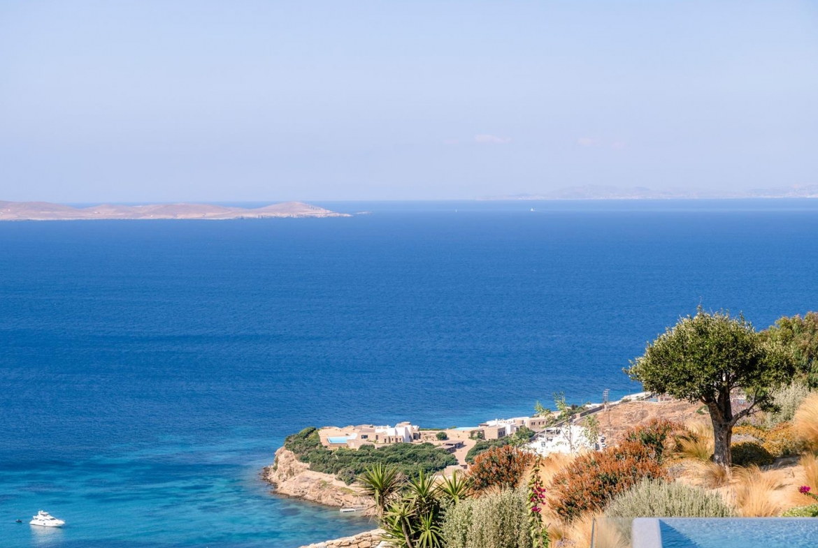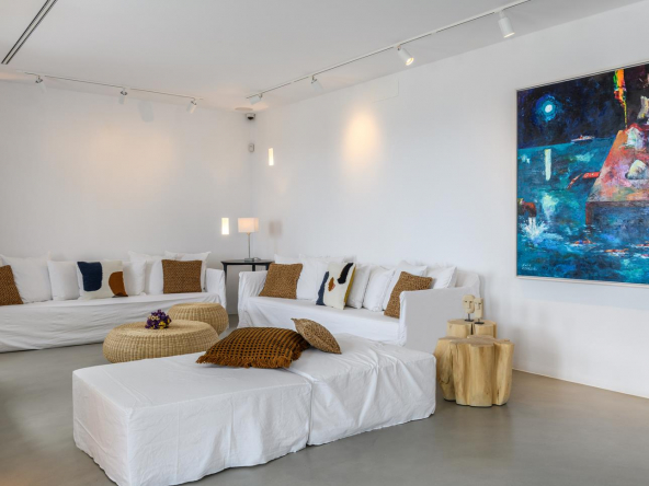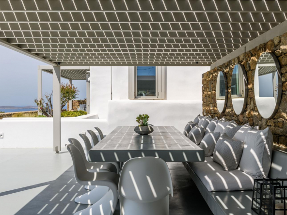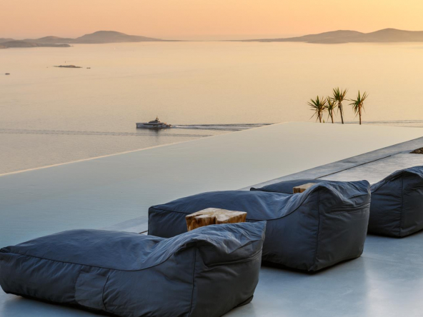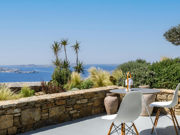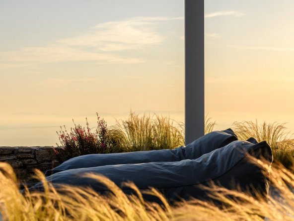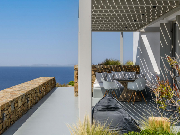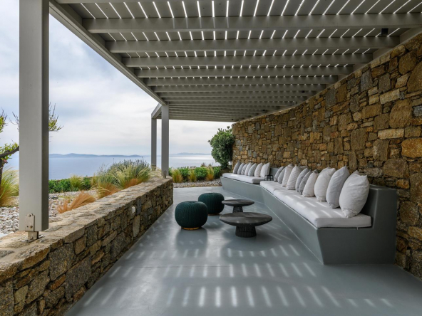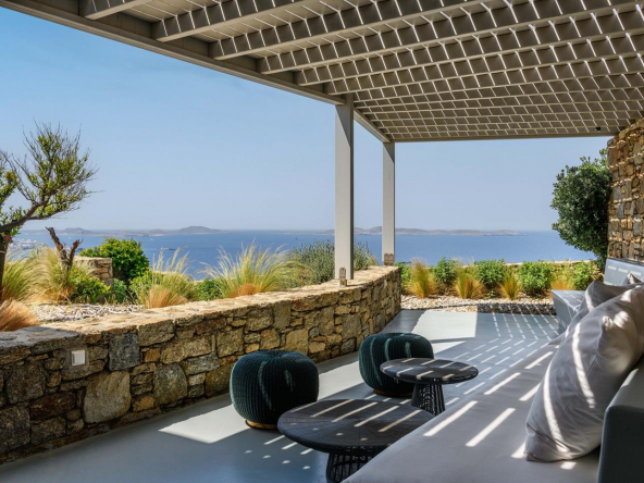A large bedroom with queen-size bed, closet, safebox, lounge area, amazing sea view, spacious en-suite bathroom with raining shower, and access to an outdoor built-in lounge area under a pergola, via balcony doors | individual entrance.